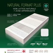 Materasso in lattice naturale 100%, anallergico, antiacaro e indeformabile. Realizzato a 7 zone di portanza differenziata per sostenere correttamente ogni parte del corpo. Lastra con doppia portanza di rigidità. Fodera con imbottitura anallergica. Sfoderabile. Altezza 24cm.